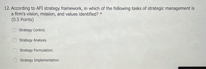 Solved 12 According To Afi Strategy Framework In Which Of Chegg Com